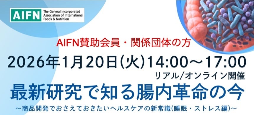 一般社団法人国際栄養食品協会(AIFN)は、AIFNオープンカレッジ(AOC)にて「最新研究で知る腸内革命の今」をテーマにした「学術セミナー」を開催します。今回は2025年8月に開催した第1回「腸内革命の今」の第2弾として、今回は腸内環境とメンタルヘルスをテーマに開催します。