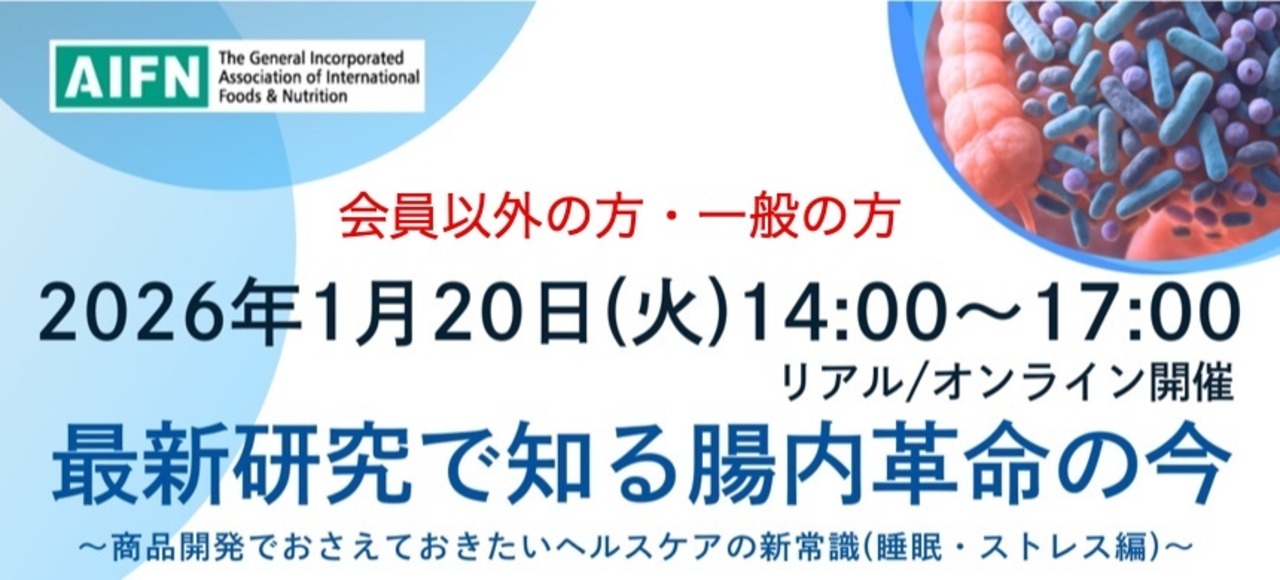 一般社団法人国際栄養食品協会(AIFN)は、AIFNオープンカレッジ(AOC)にて「最新研究で知る腸内革命の今」をテーマにした「学術セミナー」を開催します。今回は2025年8月に開催した第1回「腸内革命の今」の第2弾として、今回は腸内環境とメンタルヘルスをテーマに開催します。